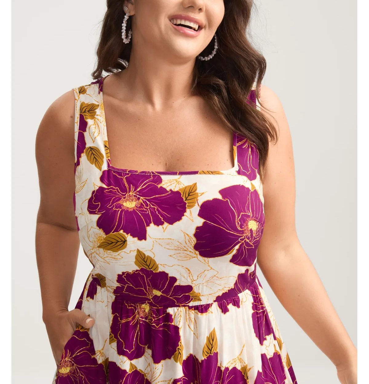 Large Floral Print Pockets Midi Dress
