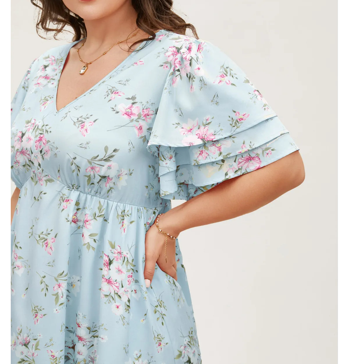 Floral Elastic Waist Tiered Ruffle Sleeve Dress