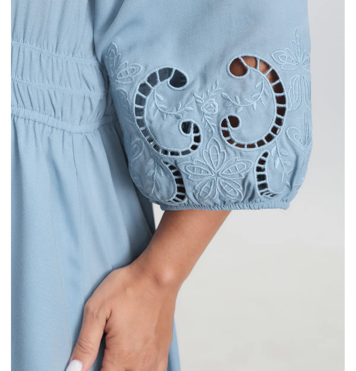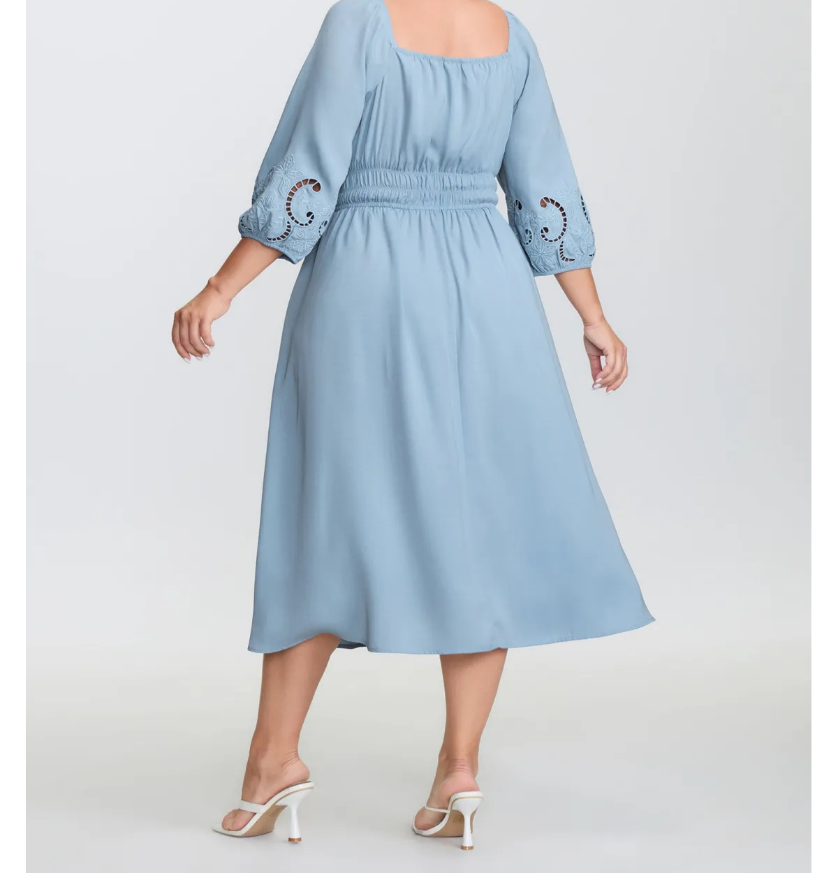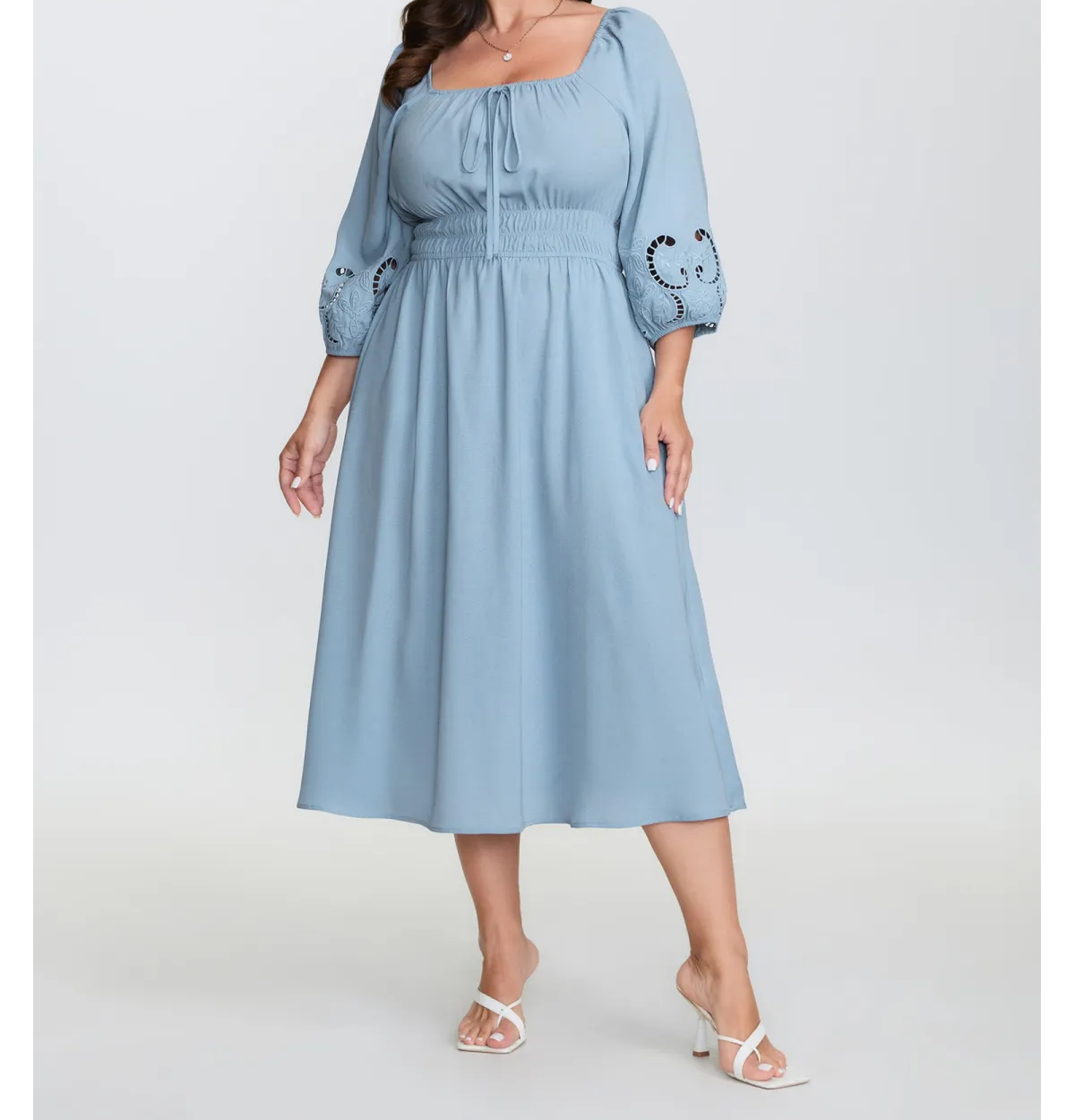 Floral Cut-Out Embroidery Stretchy Waist Midi Dress
