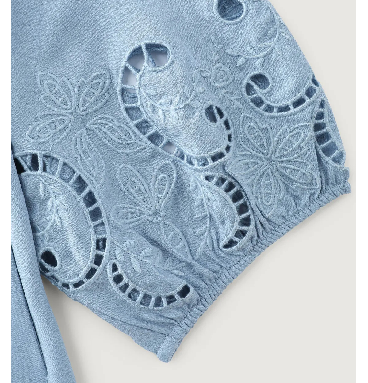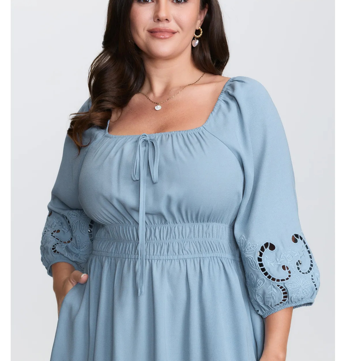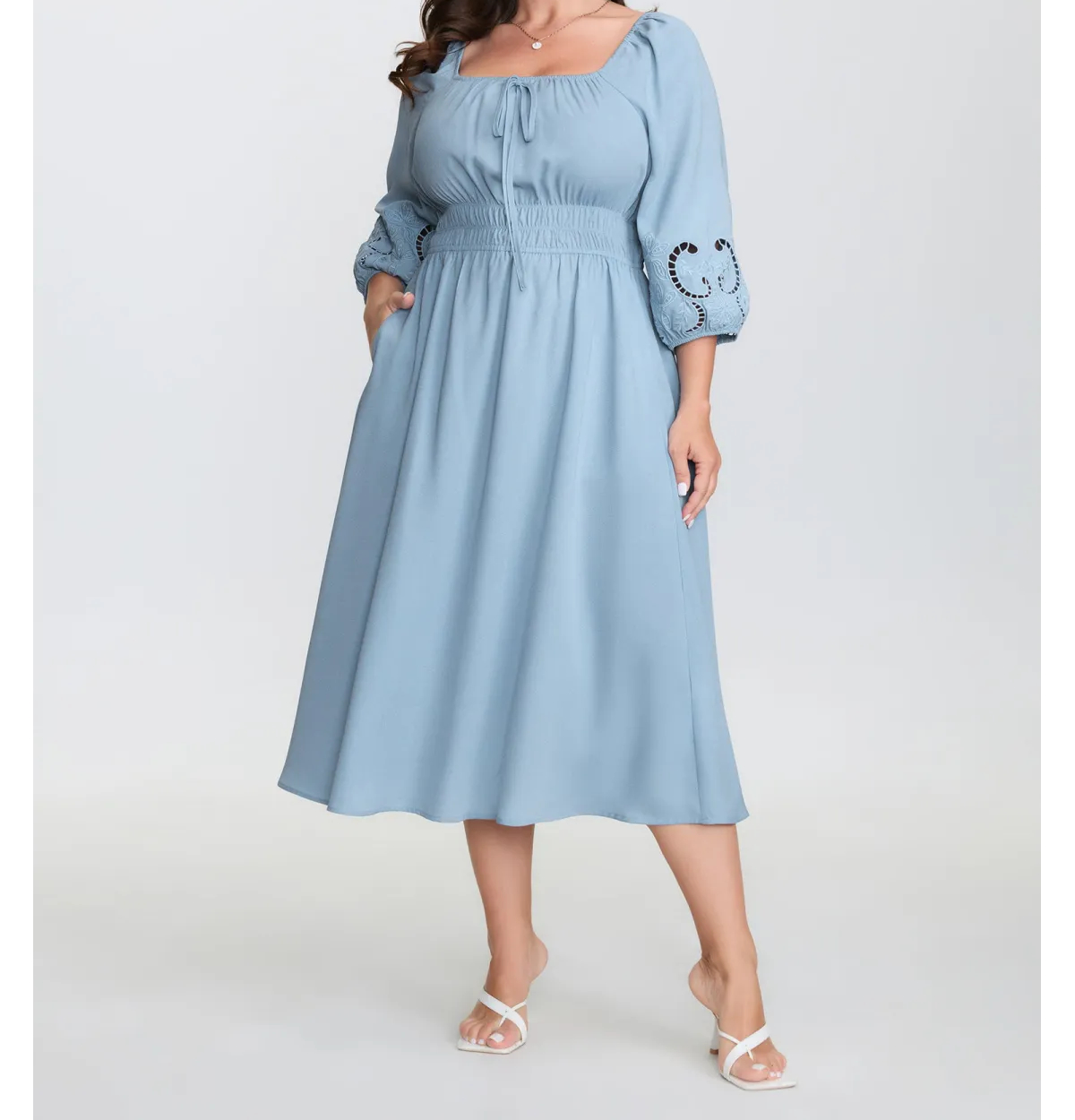 Floral Cut-Out Embroidery Stretchy Waist Midi Dress