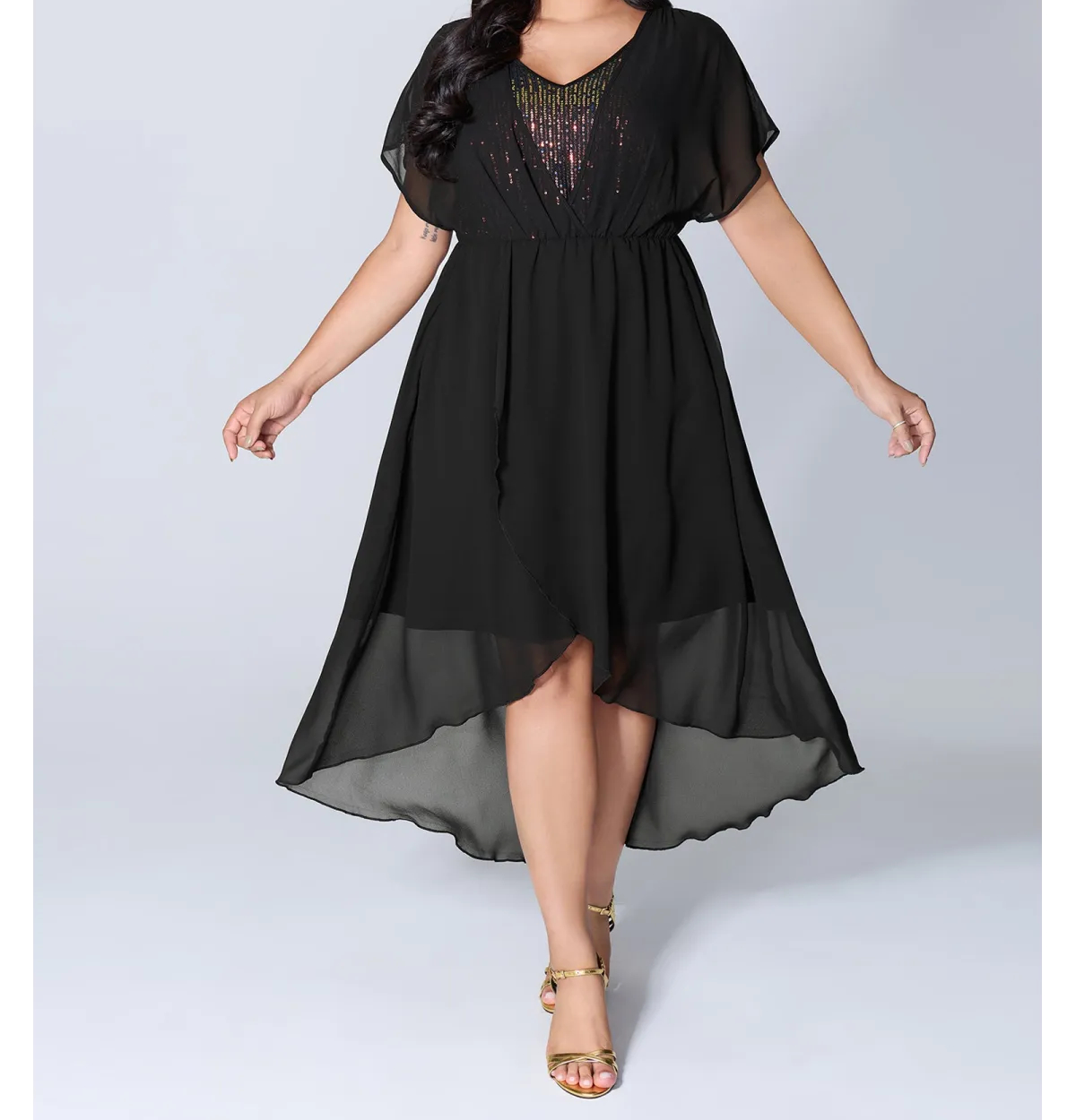 2-in-1 Sheer Sparkly Wrap Midi Dress